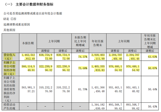 今年前三季度,天孚通信业绩继续保持高速增长,实现营业收入39.18亿元,同比增长63.63%;归母净利润为14.65亿元,同比增长50.07%。其中,第三季度实现营收14.63亿元,同比增长74.37%;归母净利润为5.66亿元,同比增长75.68%。