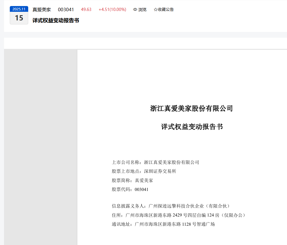 动作: 探迹远擎从原大股东“真爱集团”手里,用27.74元/股的价格,买下29.99% 的股份(约4318万股)。