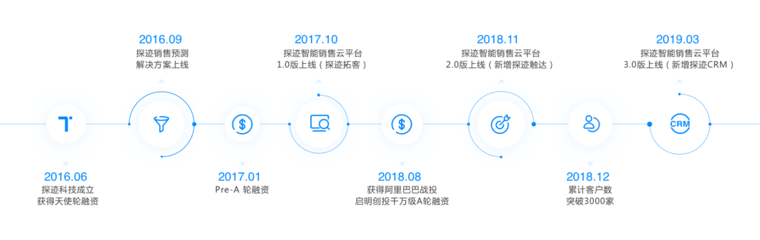 探迹科技作为中国智能销售领域的开创者,目前已服务了超过3000家企业客户,其中包括阿里巴巴、中国移动、分众传媒等行业巨头。与此同时,探迹还获得了阿里巴巴、启明创投等顶级资本的投资。