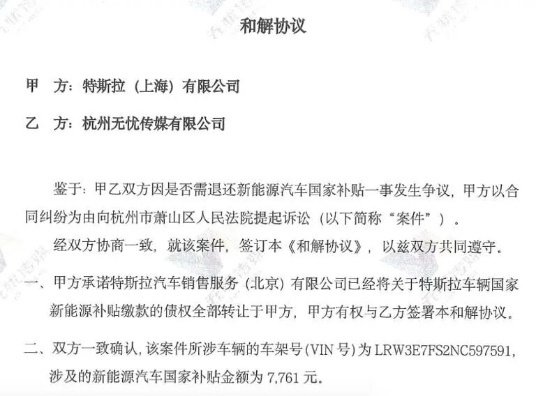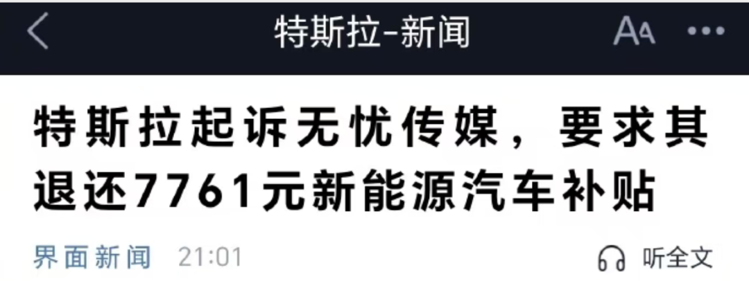 此事最初因特斯拉起诉无忧传媒要求退还7761元新能源汽车购车补贴而引发广泛关注。