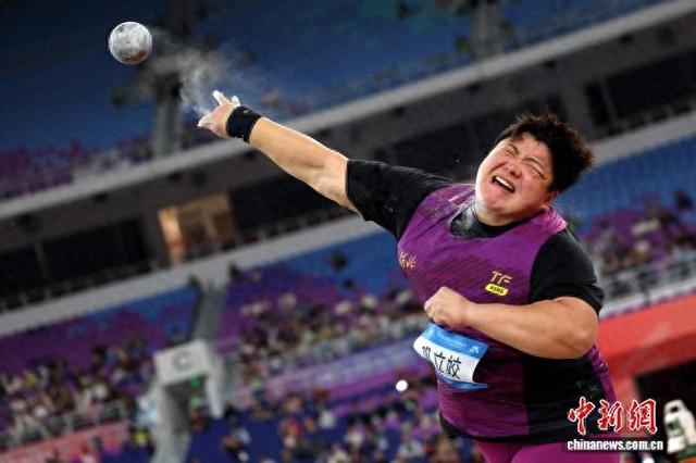 11月16日,第十五届全国运动会田径女子铅球决赛在广东省奥体中心体育场举行。奥运冠军、河北队巩立姣以19米68夺得金牌。 中新社记者 富田 摄