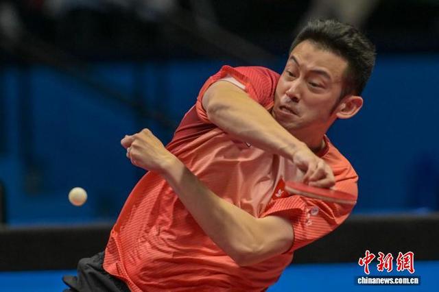 11月20日,第十五届全国运动会乒乓球成年组男子团体金牌赛在澳门银河综艺馆举行。马龙、王楚钦带领的北京队以3:1战胜樊振东带领的上海队,夺得金牌。图为北京队选手马龙在赛事中。 中新社记者 陈永诺 摄