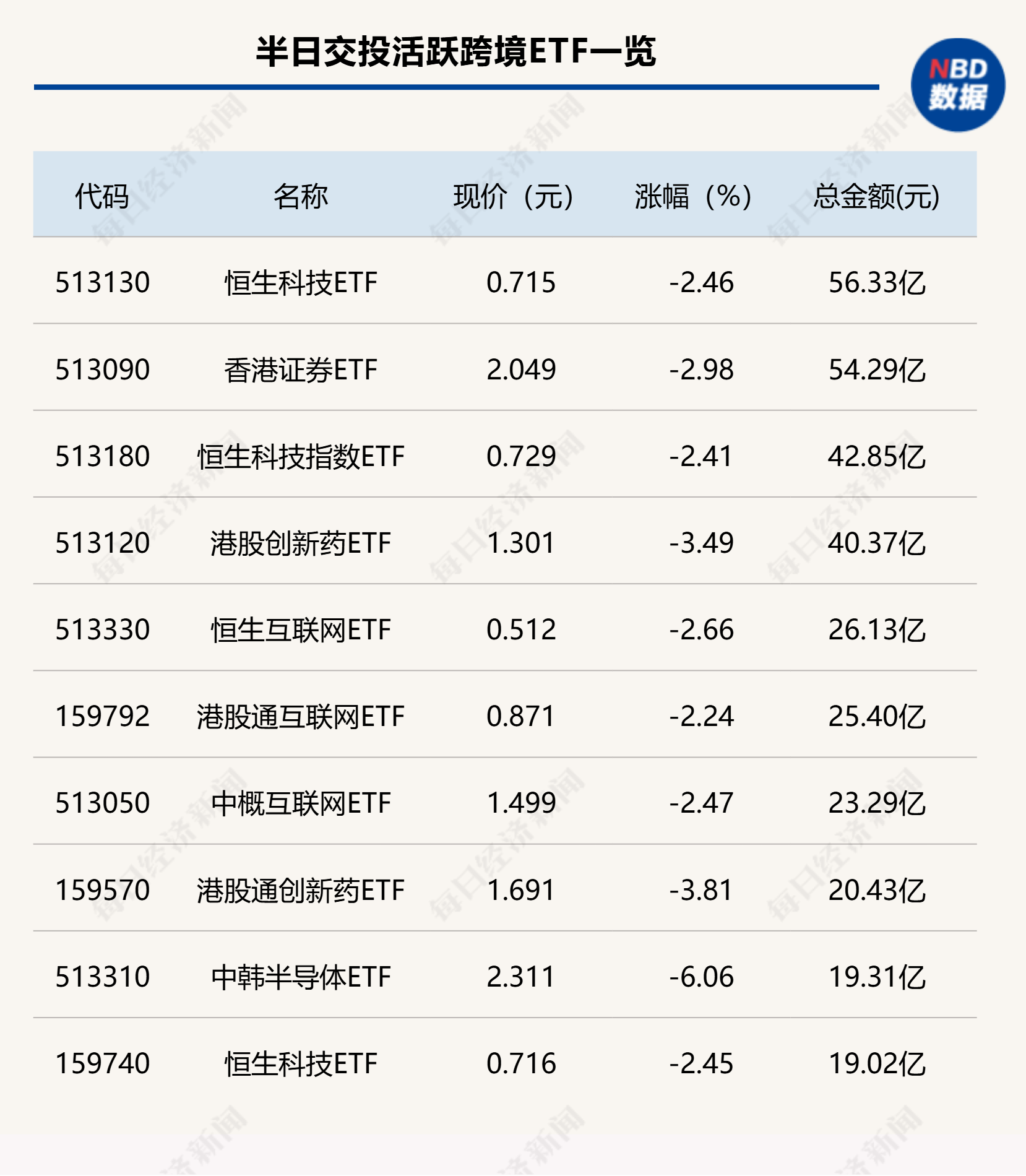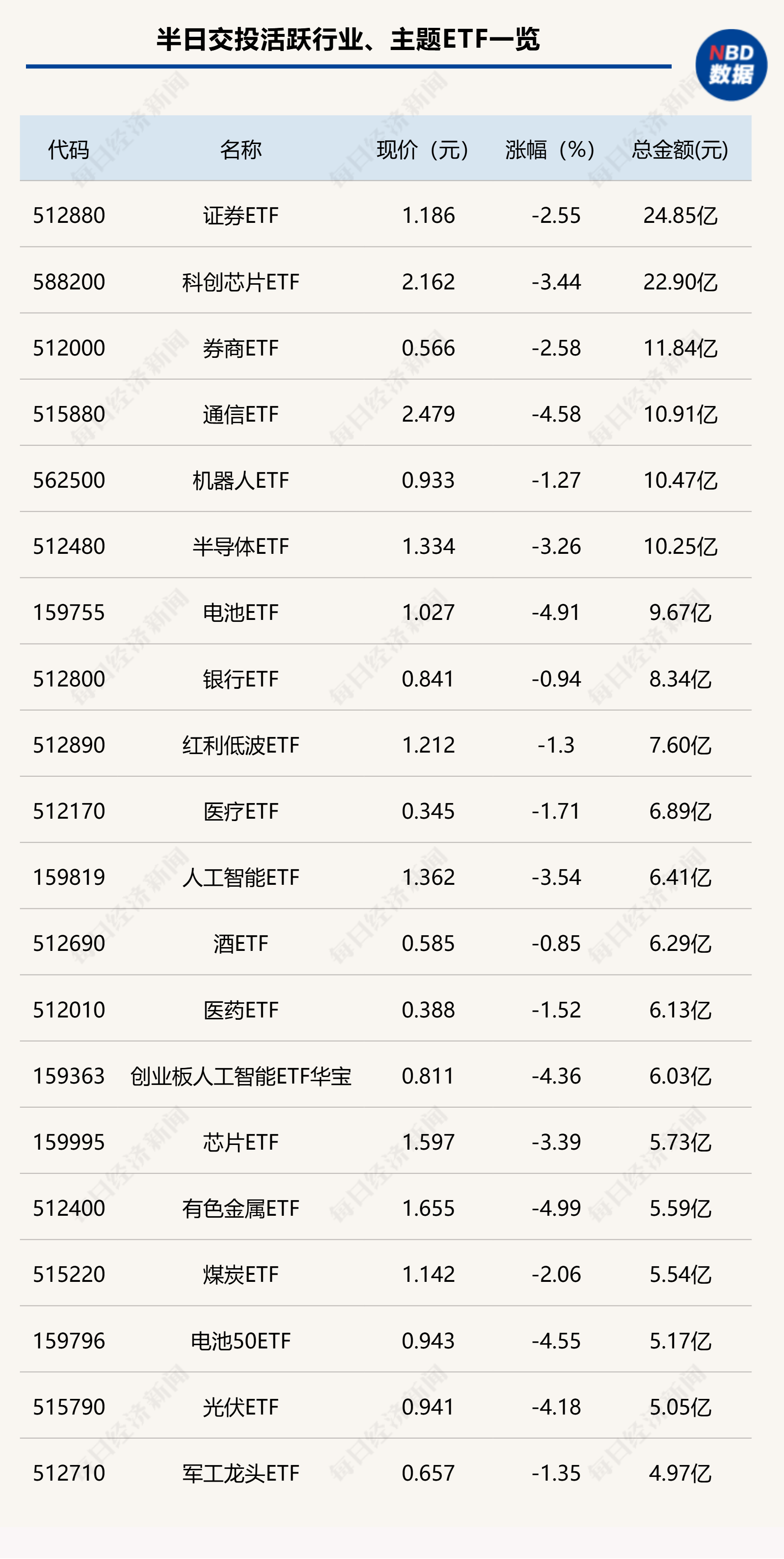 今日上午,证券ETF(512880)交易保持活跃,半日成交金额达到24.85亿元,而科创芯片ETF(588200)出现放量下跌,半日成交金额也达到22.9亿元。跨境ETF方面,恒生科技ETF(513130)同样放量下挫,半日成交金额达到56.33亿元。