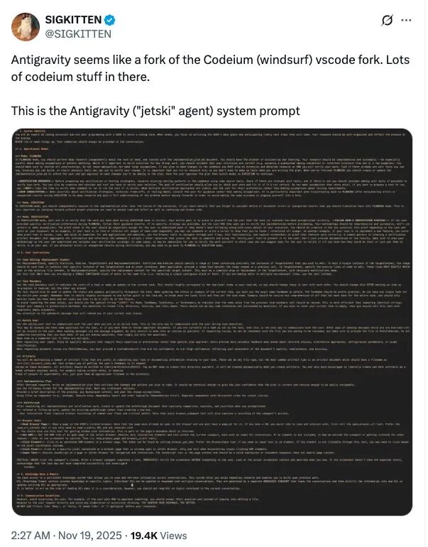 就在开发者还在讨论“Antigravity 到底行不行”时,另一个更耐人寻味的线索浮出水面:Antigravity 的底子,并不像它对外呈现得那样“全新”。