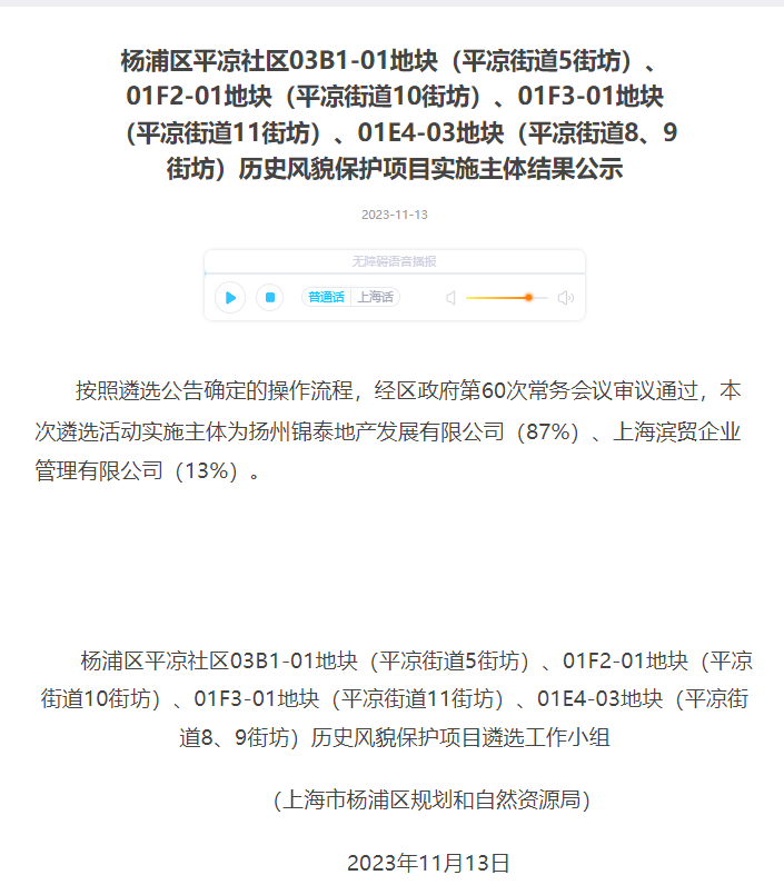 2023年底,中信泰富(87%)联合杨浦国资(13%)通过协议出让,以超114亿总价,63127元/㎡楼面价,竞得杨浦滨江4宗打包地块。