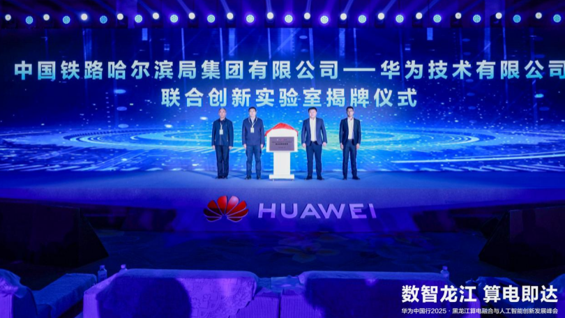 随后,中国铁路哈尔滨局集团有限公司——华为技术有限公司联合创新实验室正式揭牌,将聚焦铁路行业核心业务场景,通过自主创新的根技术、AI创新,实现技术赋能场景化业务需要,打造可复制推广的标准化解决方案,推动AI从场景创新走向产业实践,助力铁路行业智能化跃升。