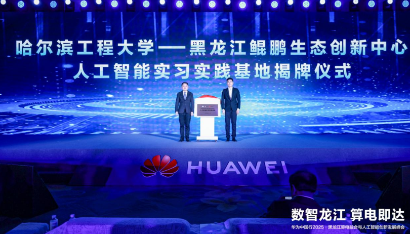 此外,“哈尔滨工程大学——黑龙江鲲鹏生态创新中心人工智能实习实践基地”揭牌。基地将以“产教融合、协同育人”为核心理念,整合高校教育资源与产业技术优势,打造集教学、实训、认证、竞赛、就业于一体的综合性人才培养平台。基地还将依托鲲鹏、昇腾等先进算力技术,为学生提供真实的产业场景和实践机会,助力培养具备创新能力和实战经验的高素质AI人才。