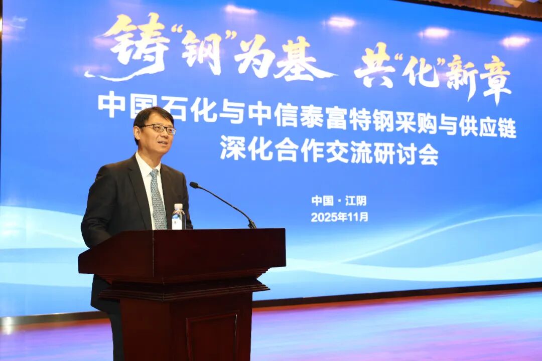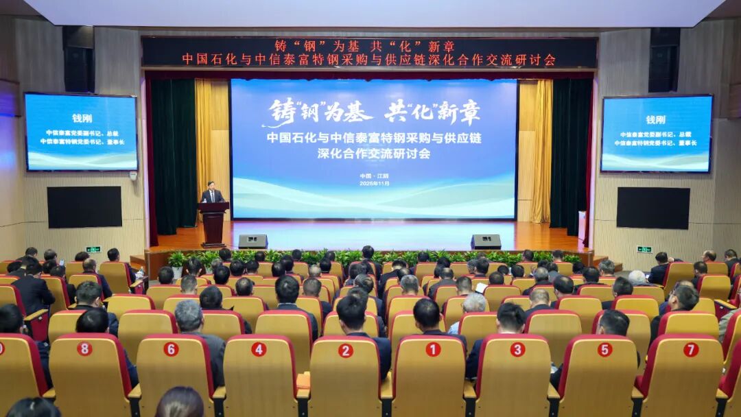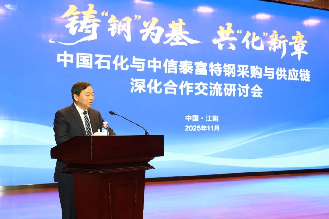11月26日,中国石化股份公司与中信泰富特钢采购与供应链深化合作交流研讨会圆满举办。本次会议以“铸‘钢’为基,共‘化’新章”为主题,双方围绕产品应用、技术研发、供应链协同及重点项目等进行了深入交流与合作展望。中国石化物资装备部总经理、物资装备部(国际事业公司)党委书记孔小强;中信泰富党委副书记、总裁,中信泰富特钢党委书记、董事长钱刚;中信泰富特钢党委副书记、总裁罗元东等领导出席会议。会议由中信泰富特钢销售总公司总经理蒋乔主持。