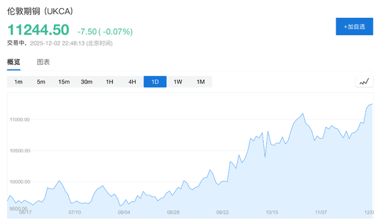 伦敦金属交易所(LME)铜期货在突破感恩节盘整区间后持续上行,创下新高。具体数据显示,LME铜价一度上涨近1%,至每吨11294.50美元;美国纽约商品交易所(Comex)铜期货涨幅则一度扩大至1.6%。交易员为规避潜在的特朗普时代关税,正竞相将铜运入美国,持续推高美欧两地价差。