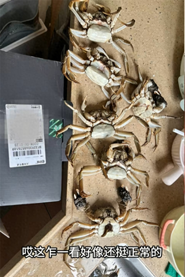 真正死螃蟹是这样的(爪子贴着台面)根据此前报道,事发11月18日,广东一位顾客收到大闸蟹后,声称收到8只螃蟹,死了6只,还晒出了图片和视频,商家尽管不太相信,还是做了退款处理。