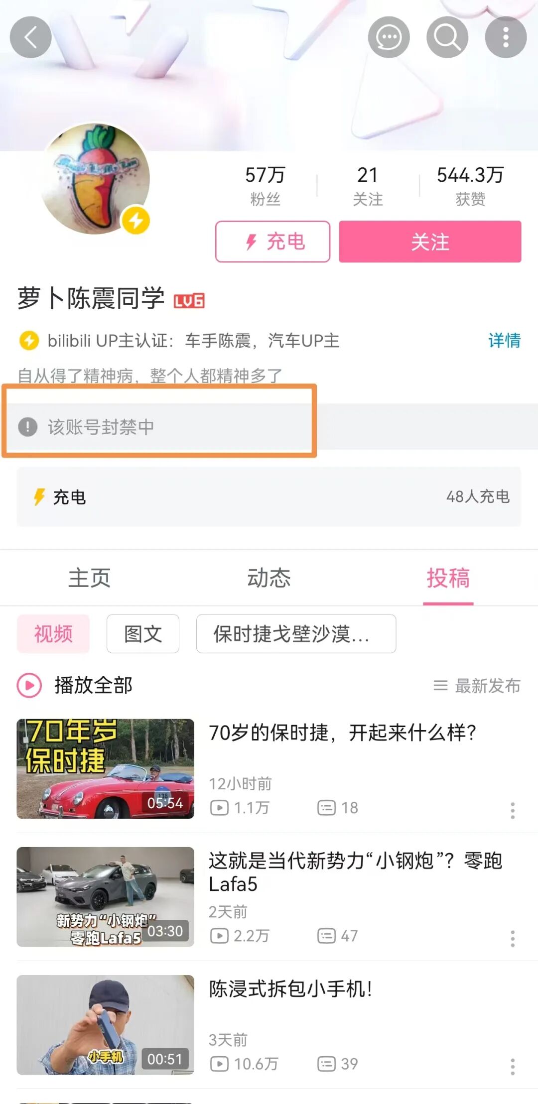 12月4日深夜,知名车评人陈震多个社交媒体平台账号被禁言。此前,其开劳斯莱斯闪灵出车祸被通报,近期有言论引质疑。
