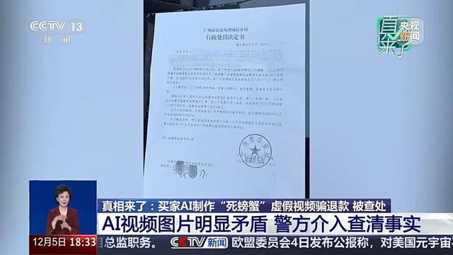 12月2日,高女士收到了警方的处理结果:此前线上购买螃蟹的买家利用手机合成制作收到6只“死螃蟹”的虚假视频,要求商家退款195元,实施诈骗。该当事人11月28日被公安机关查获。根据相关法规,决定给予该当事人行政拘留8日的处罚,追缴违法所得人民币195元。