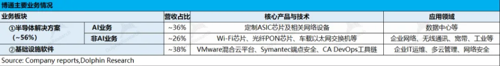 博通此前的业绩增长主要来自于AI业务和VMware的收购并表,因而AI业务中的定制ASIC芯片和VMware的定价调整策略,是市场的最主要关注点。具体业务来看: