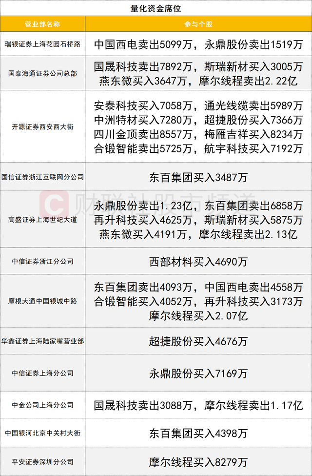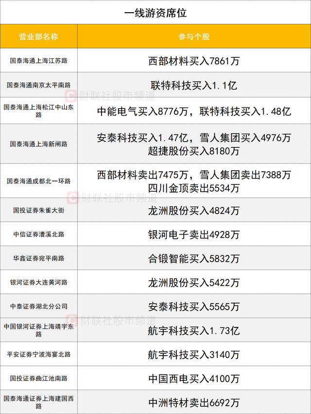 一线游资活跃度较高,今日触及20cm涨停的联特科技获国泰海通证券上海中山东路营业部净买入1.48亿,获国泰海通证券南京太平南路营业部净买入1.1亿,此外该股获深股通席位净买入1.07亿。