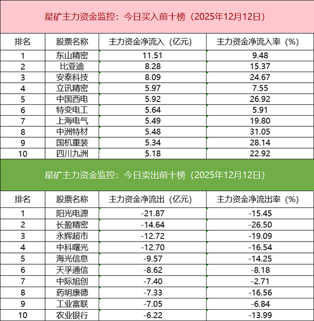 主力资金流出前十的个股所属板块较为分散,阳光电源净流出居首。