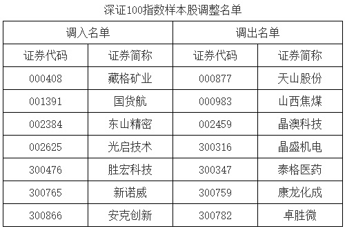 深证100指数更换7只样本,藏格矿业、国货航、东山精密、胜宏科技等调入指数。