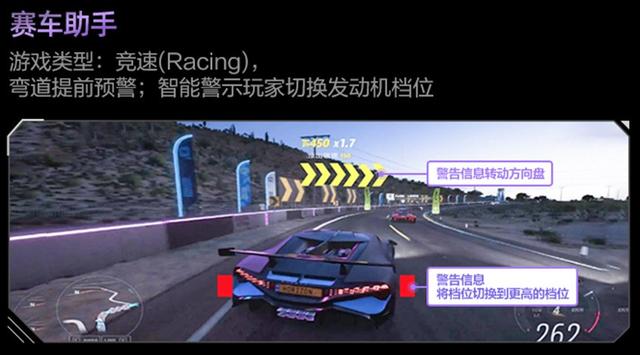 第一,赛道先知:赛车AI助手。在高速驰骋的虚拟赛道上,系统能智能分析赛道曲线与车辆动态。当弯道临近,一个醒目的黄色箭头会提前浮现在最佳行车线上,指引入弯时机。同时,在换挡临界点以动态红色方框进行提示,将动力输出始终维持在高效区间。