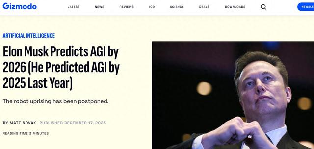 【环球网科技综合报道】12月18日消息,据gizmodo报道称,埃隆·马斯克近日在接受《商业内幕》采访时再次预测,通用人工智能(AGI)可能在2026年实现。这一说法与其2024年5月的公开表态如出一辙——当时他断言AGI将在2025年到来。如今距离2025年结束仅剩数周,该预测显然未能如期兑现。