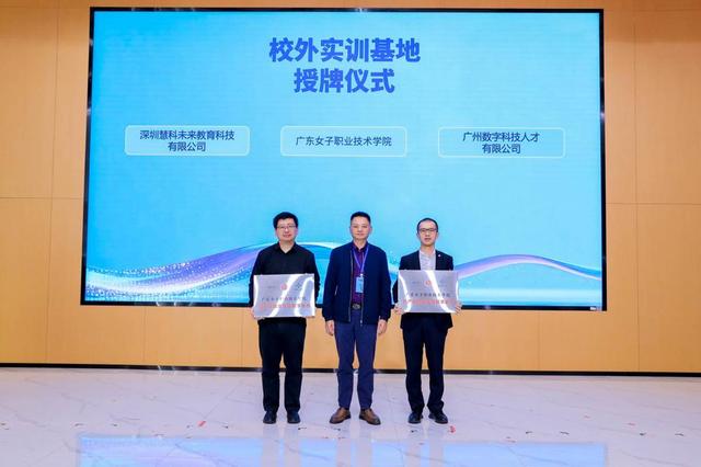 授牌仪式上,“科产教融合实践教学基地” 与 “校外教学实践基地” 授牌同步进行。广州城建职业学院、电子科技大学中山学院、广东女子职业技术学院、广州铁路职业技术学院为合作企业广州数字科技人才有限公司、深圳慧科未来教育科技有限公司授牌,构建 “三方一体、共生共荣” 的创新合作模式,让创新成果快速落地,让专业人才精准适配产业需求;韩山师范学院、中山职业技术学院、广东外语艺术职业学院、广东轻工职业技术大学、茂名职业技术学院、广州职业技术大学、广州华商职业学院为广州数字科技人才有限公司授牌,打造 “聚焦核心、精准对接” 的人才深耕平台。这些实践基地将成为学生就业的 “训练场” 与企业选材的 “储备库”,为技能型人才成长铺就宽广道路。