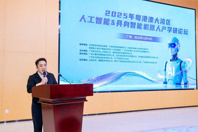 12月19日,以 “面向未来:构建人工智能及具身智能机器人实践教学与人才培养新体系” 为主题的粤港澳大湾区人工智能及具身智能机器人产学研论坛在广州成功举办。本次论坛响应具身智能战略布局与“人工智能+” 行动部署,汇聚政府部门领导、院校专家、企业代表等各界力量,通过专题分享、解决方案发布、圆桌对话、签约合作等多元形式,搭建起 “产、学、研、用” 高效对接平台,为大湾区智能产业高质量发展注入强劲动能。