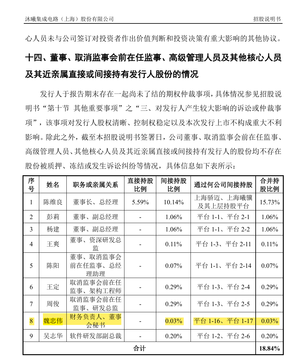 根据招股书,魏忠伟通过员工持股平台间接持有公司 0.03% 的股权。别看比例小,沐曦市值庞大(截至12月19日约2863亿元),这部分股权价值已飙升至 约8589万元。而他2024年在沐曦的薪酬仅 29.73万元,股权收益才是真正的大头。