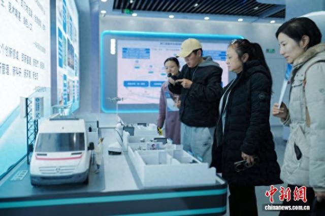 12月20日,国家人工智能应用中试基地(医疗)·浙江产业园在浙江杭州正式开园,同步发布年度系列重大成果。图为观众参观“未来医院”模型。中新社记者 张煜欢 摄