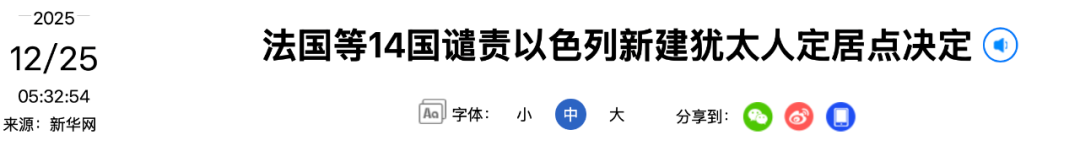 24日当天,法国、德国、加拿大等14个国家发表联合声明,谴责以色列政府近日批准在约旦河西岸新建犹太人定居点。