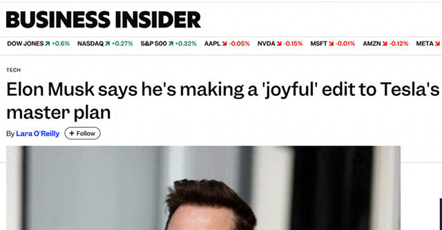 【环球网科技综合报道】12月26日消息,据Business Insider报道,特斯拉创始人埃隆·马斯克通过社交平台X发文宣布,计划将特斯拉的使命措辞由“可持续的富足”调整为“惊异的富足”。马斯克解释称,新表述更具愉悦感,这一调整也与特斯拉最新发布的《宏伟蓝图》长期战略文件相呼应。