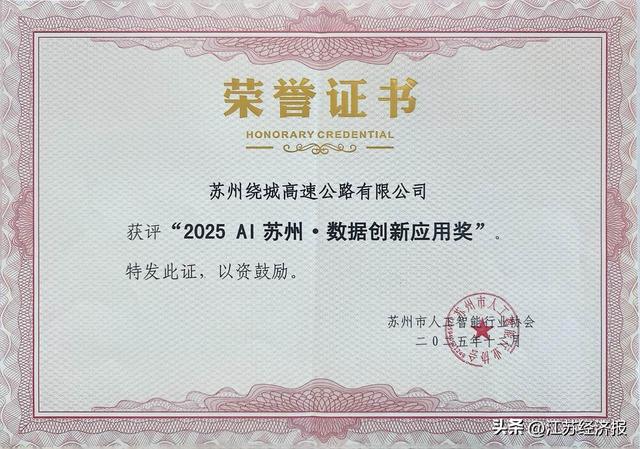 近日,由苏州市人工智能行业协会、苏州市长三角人工智能生态服务研究院及环秀湖创业俱乐部联合主办的第三届AI苏州年度大会暨环秀湖人工智能OPC大会成功举办。会上正式公布了2025年度“AI苏州”人工智能行业系列评选结果,苏州绕城高速公路有限公司申报的《绿通AI稽核智能识别系统及其高质量数据集》项目,荣获本年度“AI苏州·数据创新应用”荣誉。