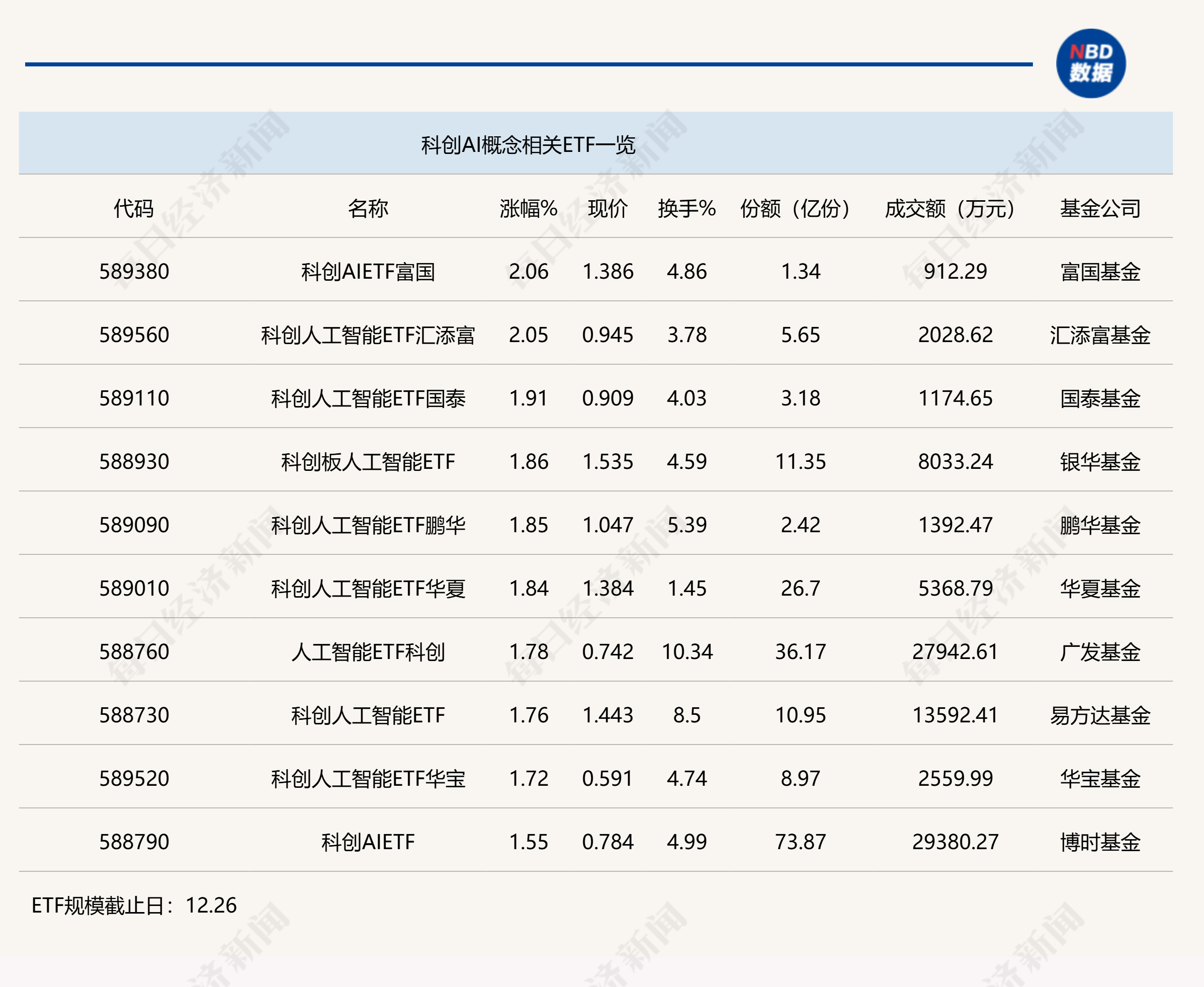 点评:科创AIETF富国(589380)今日上午上涨2.06%,其份额为1.34亿份,半日成交金额为912.29万元。该ETF追踪的是上证科创板人工智能指数,追踪该指数的ETF还包括科创人工智能ETF汇添富(589560)、科创AIETF(588790)等。其中,科创AIETF(588790)份额高达73.87亿份,半日成交金额达2.94亿元。