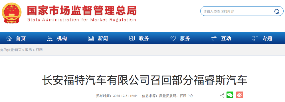 除本田之外,长安福特汽车有限公司也宣布召回。公告显示,自即日起召回2018年2月27日至2019年5月9日期间生产的部分福睿斯汽车,共计38473辆。