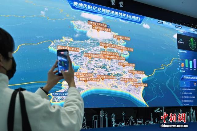 1月6日,“新春走基层”媒体调研行黄埔低空经济专场在广州市黄埔区开展。图为大湾区(黄埔)低空经济产业创新中心的黄埔区低空交通管理服务平台(测试)吸引媒体拍摄。中新社记者 陈楚红 摄