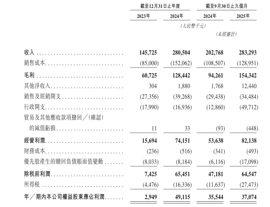 在资本加持与IP赋能的双重作用下,Suplay的业绩实现爆发式增长。财务数据显示,公司营收从2023年的1.46亿元飙升至2024年的2.81亿元,同比增幅达92.5%;2025年前三季度营收已达2.83亿元,全年突破3亿元几无悬念。
