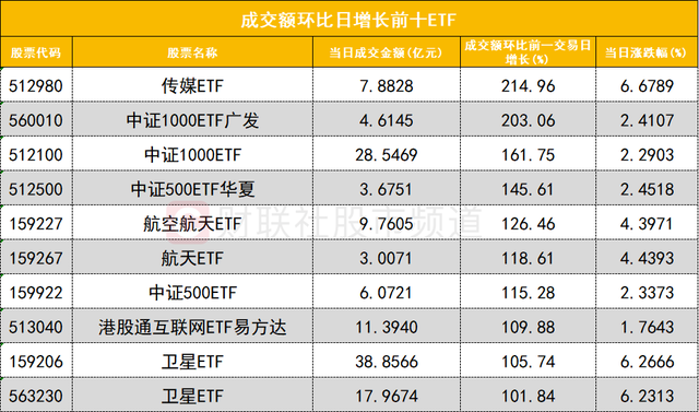 从成交额环比增长前十的ETF来看,传媒ETF(512980)成交额环比增长214%位居首位。传媒ETF紧密跟踪中证传媒指数,权重股包括昆仑万维、省广集团等公司,其中多只标的是AI应用概念股。中证1000ETF广发(560010)成交额环比增长203%位居次席。