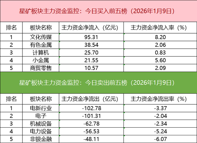 从主力板块资金监控数据来看,文化传媒板块主力资金净流入居首。