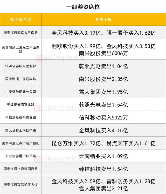 一线游资活跃度较高,金风科技晋级4连板,获四家实力游资(国元证券上海虹桥路、国泰海通证券上海中山东路、国泰海通证券南京太平南路、国泰海通证券宜昌沿江大道)合计大幅买入13.46亿元。