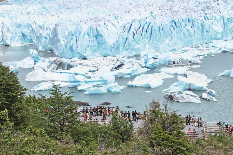 1月3日,游客在阿根廷圣克鲁斯省冰川国家公园观赏莫雷诺冰川。
