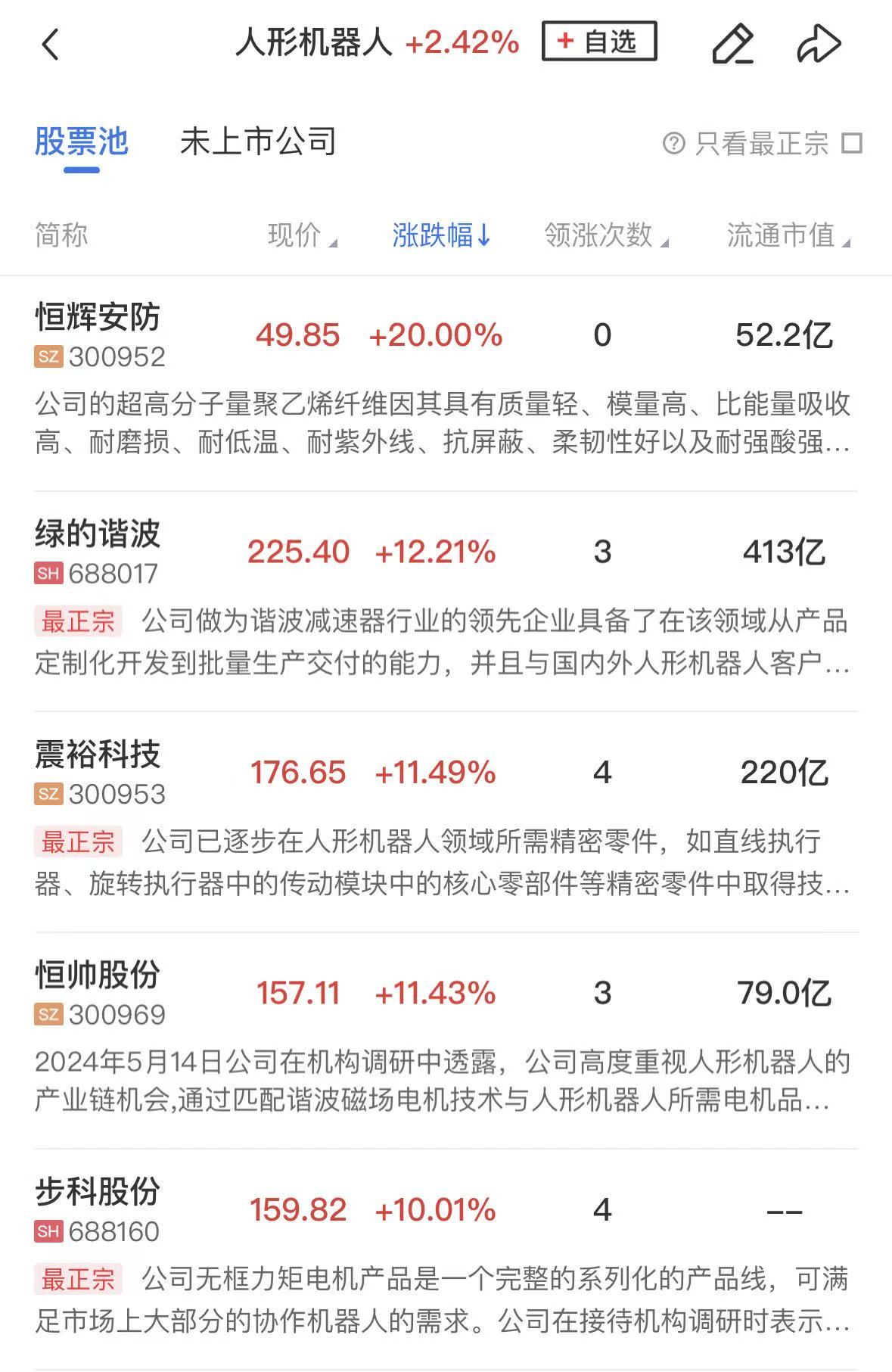 人形机器人概念走强,宁波华翔、恒工精密、方正电机、五洲新春等多股涨停,斯菱智驱、绿的谐波、震裕科技、步科股份涨超10%。