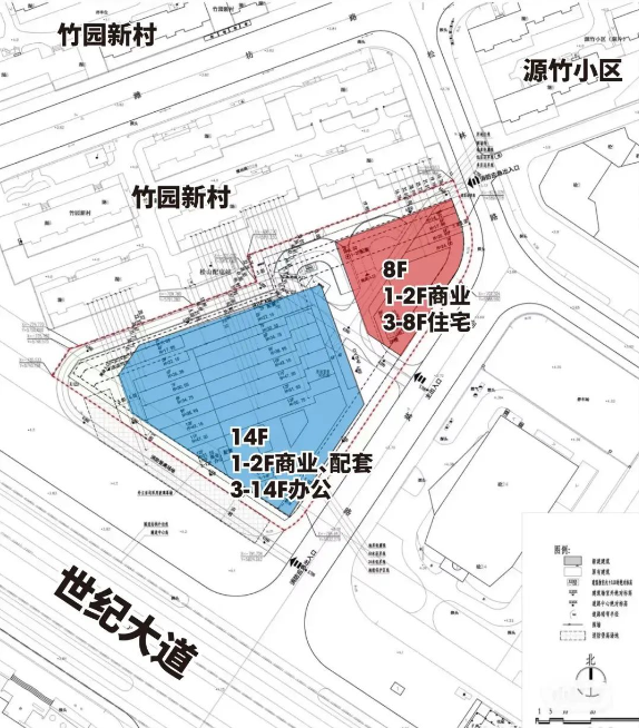 建设内容:西面的14层建筑,1-2层规划商业、配套,3-14层是办公;东面的8层建筑,1-2层是商业,3-8层是住宅。