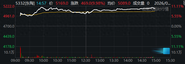 行情数据显示,东陶周四的涨势使陶瓷板块成为东证指数周四上午表现最佳的板块。截至发稿,东陶股价日内上涨了10.09%,创下2021年2月以来最大盘中涨幅,这轮升势也使得其年内迄今的涨幅达到了约20%。