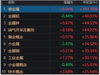 同花顺数据显示,“贵金属”板块年内涨幅已超过100%。