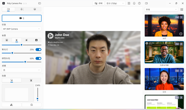 NPU同样拥有着出色的AI算力,而且功耗更低,非常适合处理图像、视频相关工作。HP EliteBook X G1i配备的Poly Camera Pro,是一款功能强大的视频会议处理软件,可以提供包括背景虚化、聚光灯、修饰外观、滤镜、自动取景、预设模板等功能,其中多项功能基于AI,均运行在NPU上,效果好,功耗低。它也支持第三方会议软件调用,不需要付费也能体验到视频会议高级功能;再搭配Poly Studio的AI降噪功能,能够为职场人士提供TOP级线上会议体验。而出色的线上会议体验正是移动办公中非常重要的一环,HP EliteBook X G1i在这一方面有明显优势。