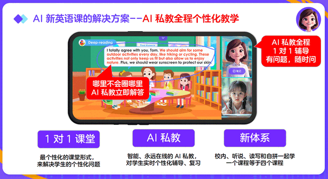 作为曾主持全国英语教师新课标培训的专家,韩秀慧对课标变化有着深刻把握:“新课标不再只关注知识点记忆,更强调在真实场景中运用语言、跨文化交流与批判性思维。”为此,她带领教研团队重构课程体系,摒弃传统“词汇+语法”的碎片化教学,采用“主题语篇+任务驱动”模式,每个单元围绕生活场景、传统文化、世界认知等主题展开,让学生在完成任务的过程中自然习得语言。比如在“传统节日”单元,学生不仅要掌握相关词汇句型,还要通过AI私教引导,对比中西方节日习俗,阐述文化差异,培养跨文化理解能力;在“环保”主题学习中,AI会通过“如何减少塑料污染”等开放性问题,启发学生思考并提出解决方案,锻炼逻辑思维与表达能力。
