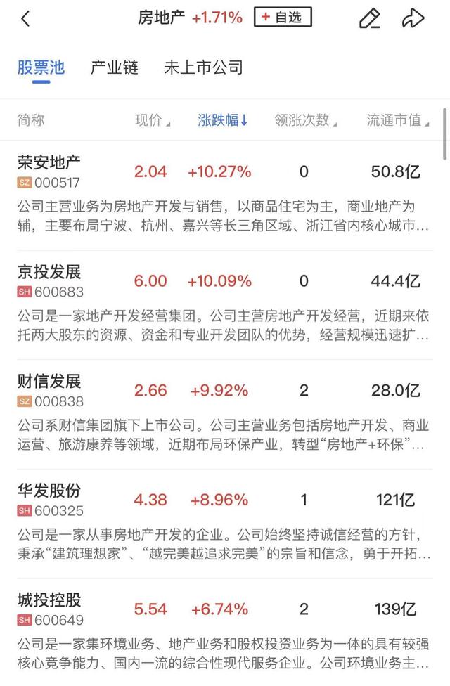 房地产板块同样表现活跃,荣安地产、财信发展、京投发展涨停,华发股份、城投控股、我爱我家、招商蛇口等个股涨幅居前。
