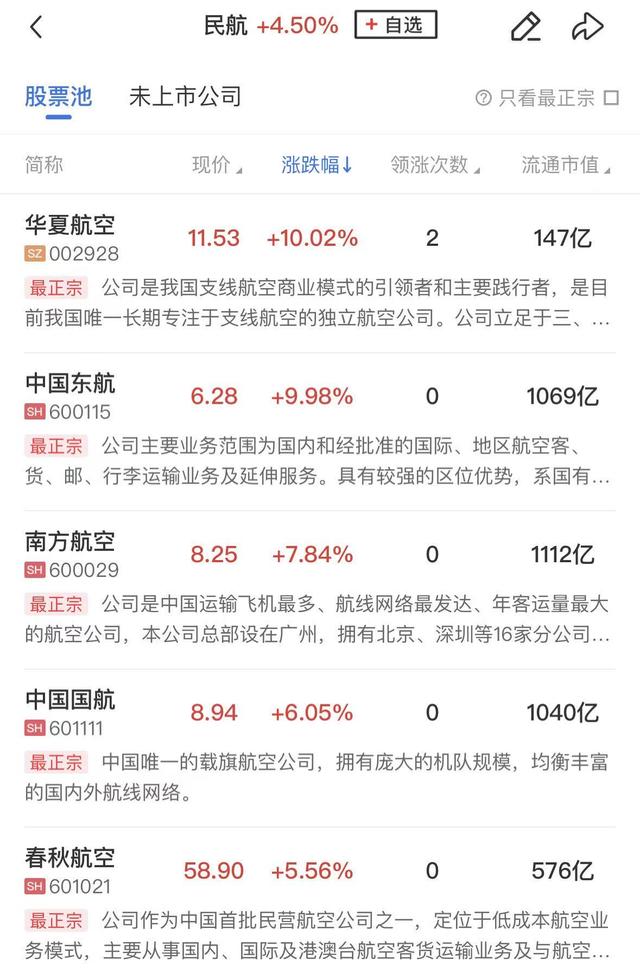 机场航运概念走强,中国东航、华夏航空涨停,南方航空、中国国航涨幅居前。