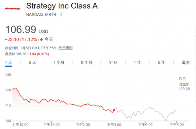 在投资者对业绩的失望情绪中,Strategy股价周四重挫17.1%。不仅抹去了美国大选后的所有涨幅,也导致该股较2024年11月的历史高点下跌了近80%。