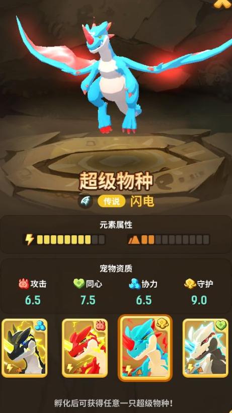 龙蛋:孵化后随机获得一只超级物种——闪电。