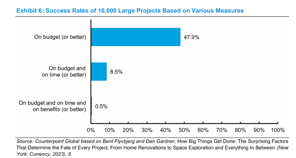 报告用Bent Flyvbjerg收集的16000个大型项目数据库做参照,结果几乎是“劝退级别”:
