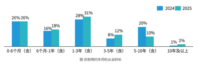 中国城市公共交通协会在调研报告中指出,77%的网约车平台企业新司机,平均在职时长不超过6个月;同时,有35%的司机对当前工作不满意、38%的司机计划转行。