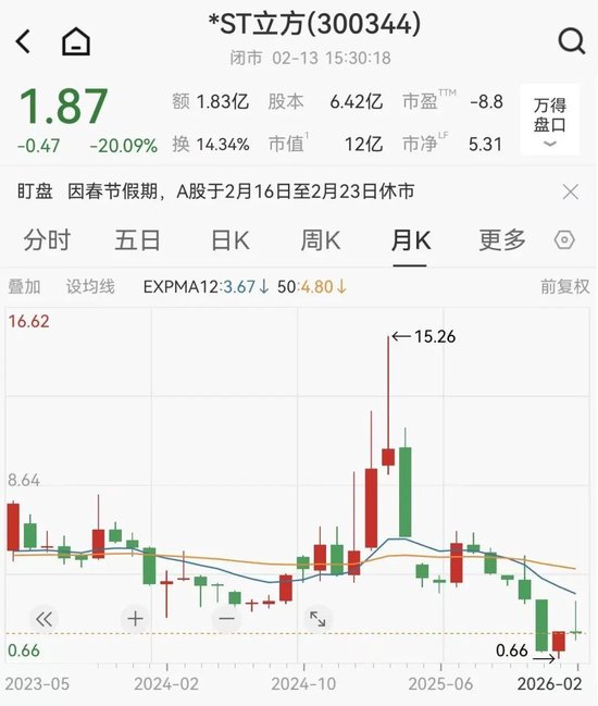 2024年9月到2025年3月,*ST立方股价从3元左右狂飙到15.26元,其间涨幅约400%。